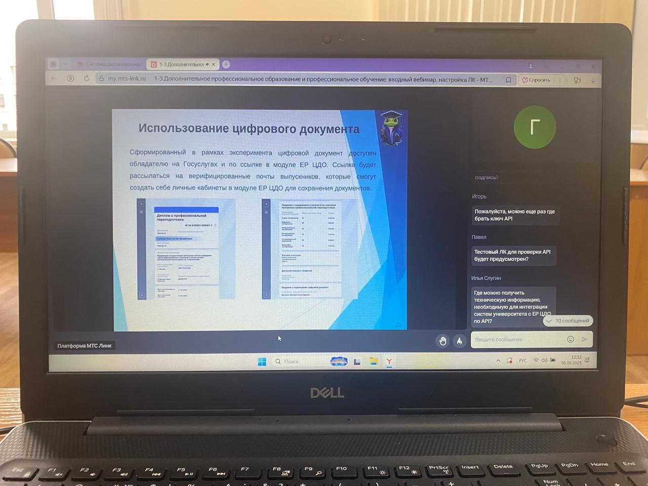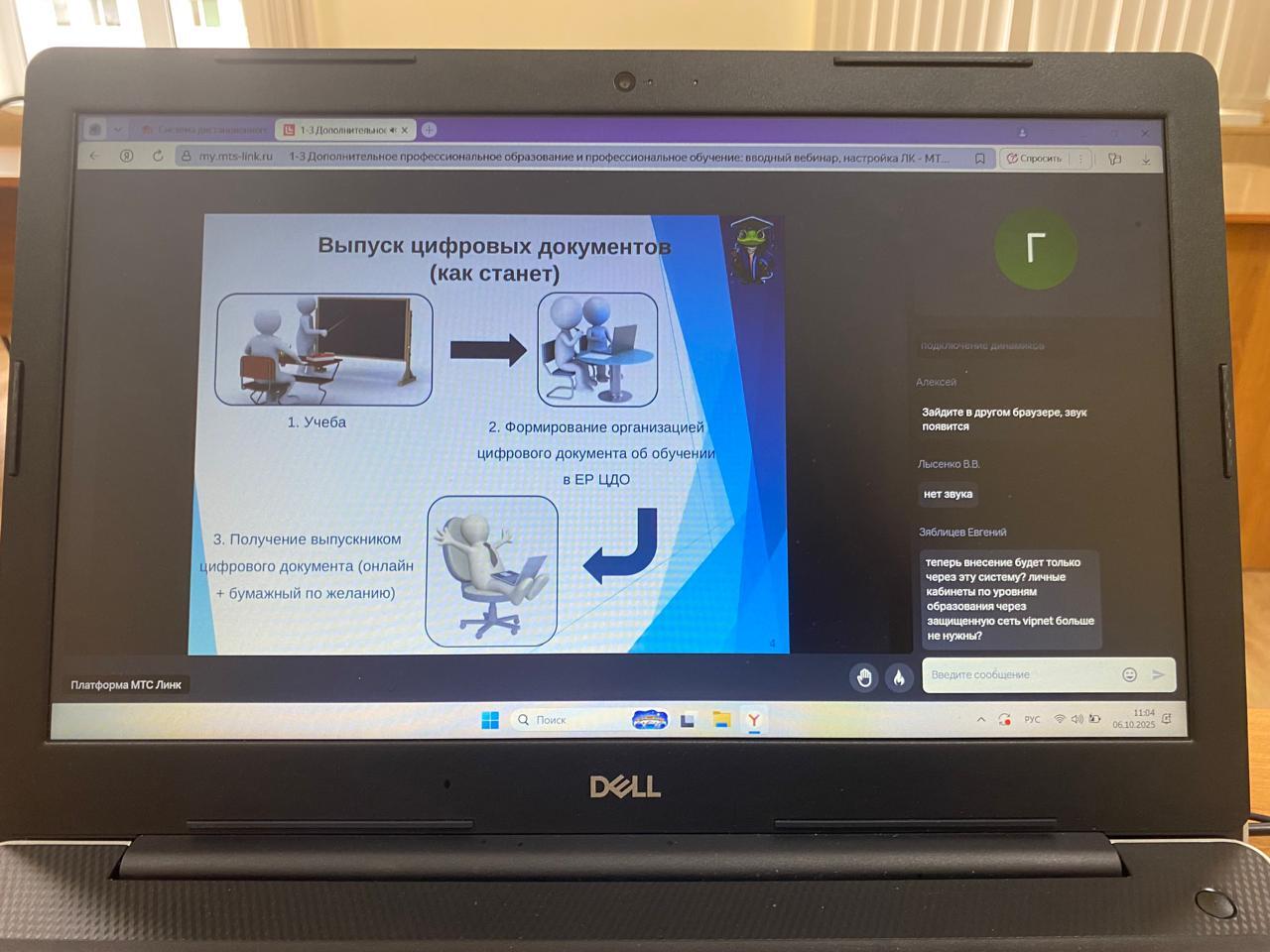 06 октября руководитель Меркушкина С.А. и специалисты Центра повышения квалификации приняли участие в онлайн – вебинаре с целью практико – ориентированной подготовки организации к переходу на реестровую модель федеральной информационной системы «Федеральный реестр сведений о документах об образовании и (или) о квалификации, документах об обучении».