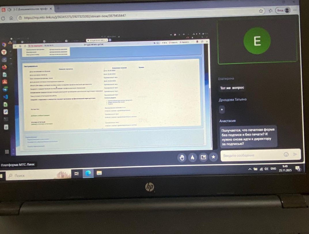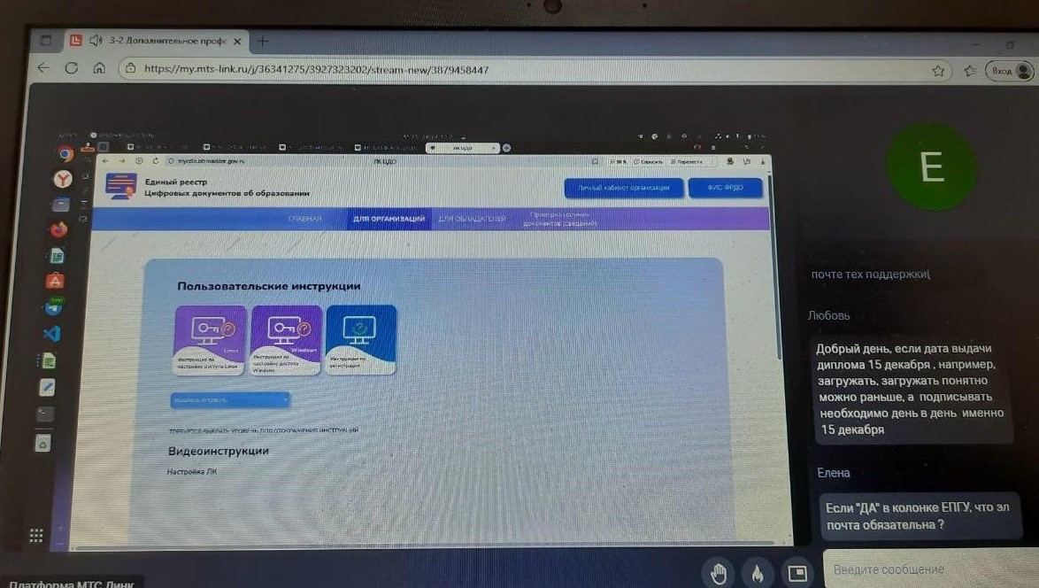 25 ноября специалисты учреждения: Кочетовская Е.А., заместитель директора, Захарова И.Н., заведующая отделом комплектования, Арискин Н.В. программист стали участниками обучающего вебинара по работе в модуле «Единый реестр цифровых документов об образовании» (ЕР ЦДО организатором которого является Рособрнадзор.