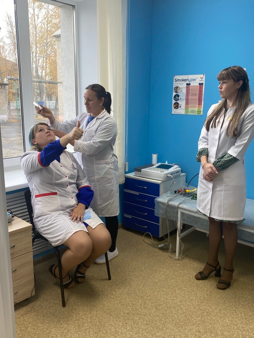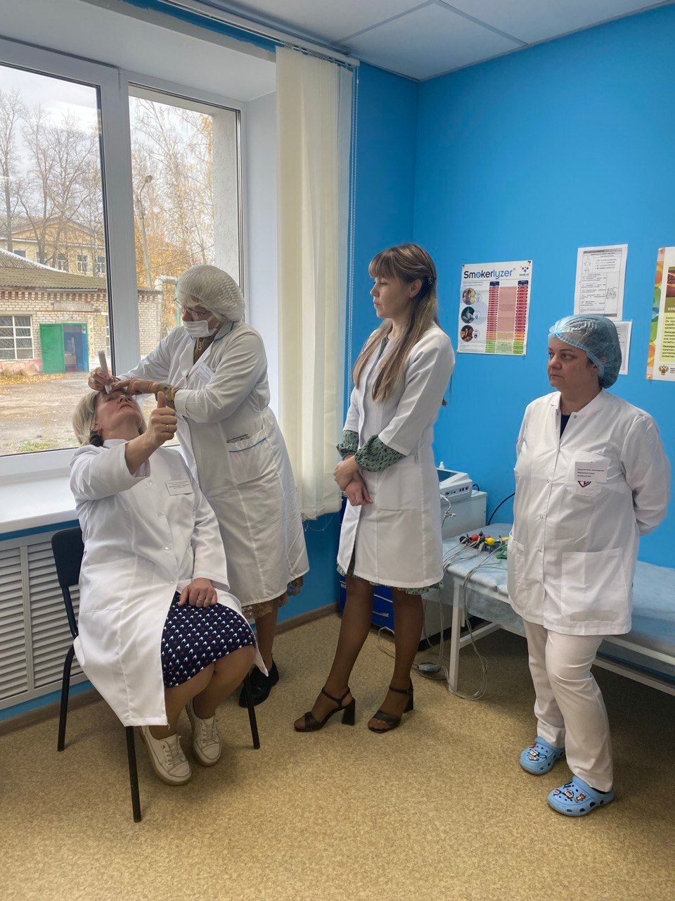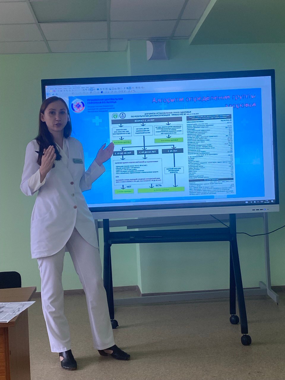 Прослушав лекцию и задав интересующие вопросы, участники переместились в классы для практических занятий, где отработали навыки приемов и обследований при проведении диспансеризации взрослого населения.