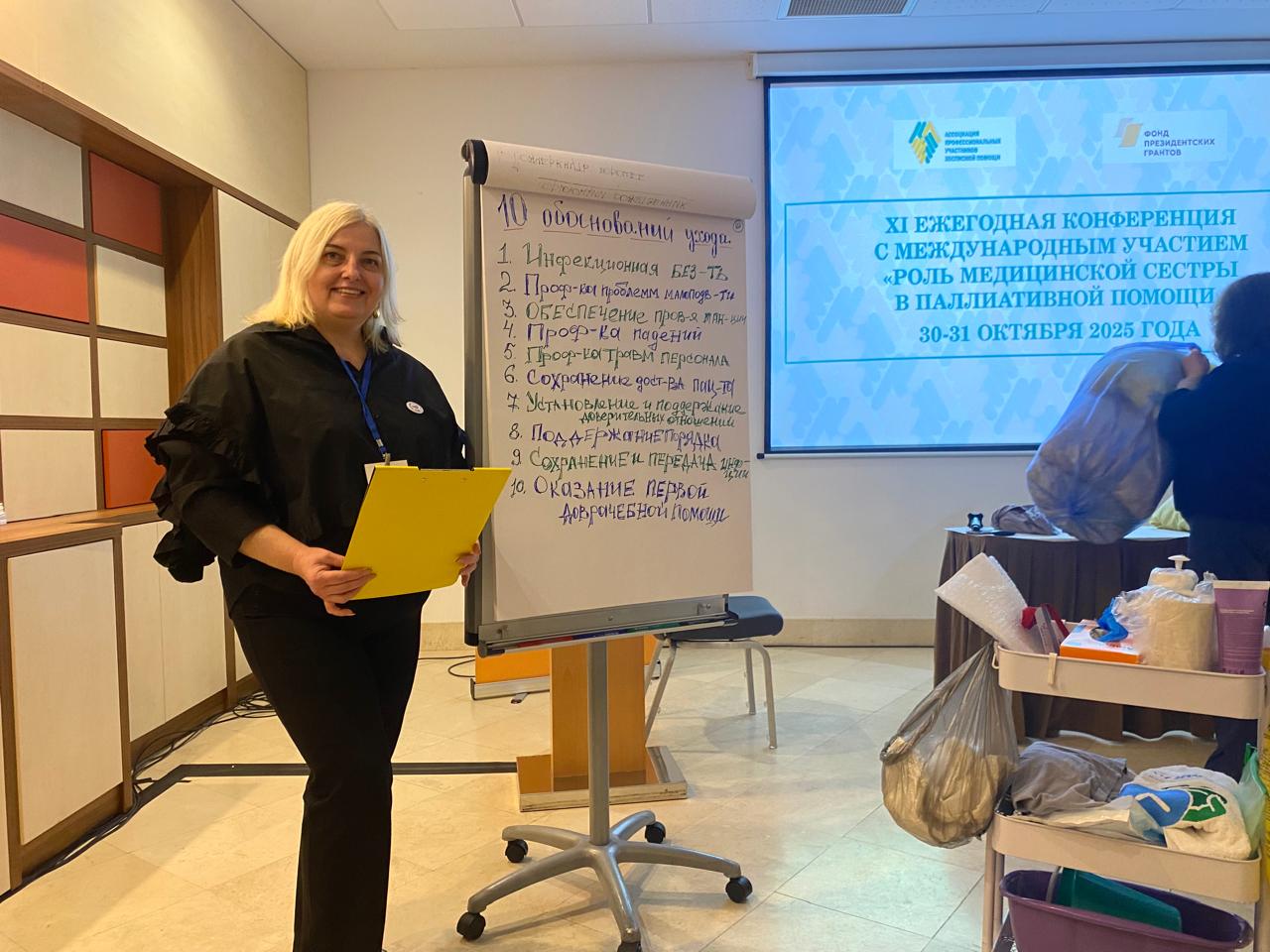 С 30 по 31 октября 2025г. в Москве прошла XI ежегодная конференция с международным участием "Роль медицинской сестры в паллиативной помощи" – ключевая платформа для обмена передовым опытом, обсуждения актуальных вызовов и определения вектора развития этого важнейшего направления медицины. Мероприятие было проведено Ассоциацией профессиональных участников хосписной помощи, при поддержке Федерального научно-практического центра паллиативной помощи ФГФОУ ВО Первый МГМУ имени И.М.Сеченова Минздрава России и Фонда президентских грантов.